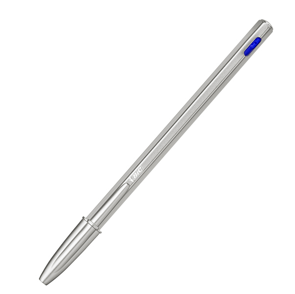 Penna a sfera Cristal Re'New punta media 1mm. Corpo in metallo che dona un look elegante e moderno, cappuccio in plastica riciclata 96%. Dotata di pulsante col il livello d'inchiostro visibile per una sostituzione facile del refill. Fornita in astuccio di cartone riciclata al 100% con 2 refill inclusi.