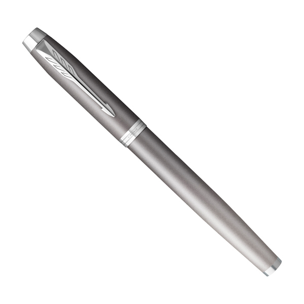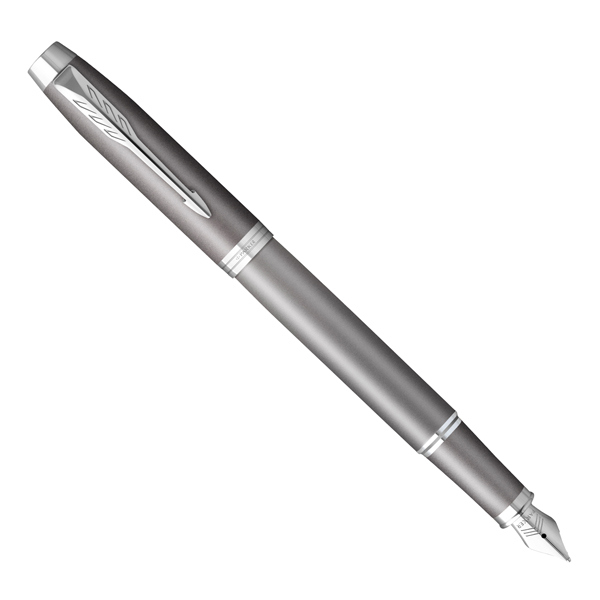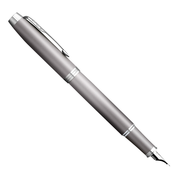 Stilografica Parker in acciaio inossidabile con finitura metallica satinata sfumata e completata con finiture cromate. Confezionata in elegante astuccio regalo. Fornita con cartuccia colore blu.