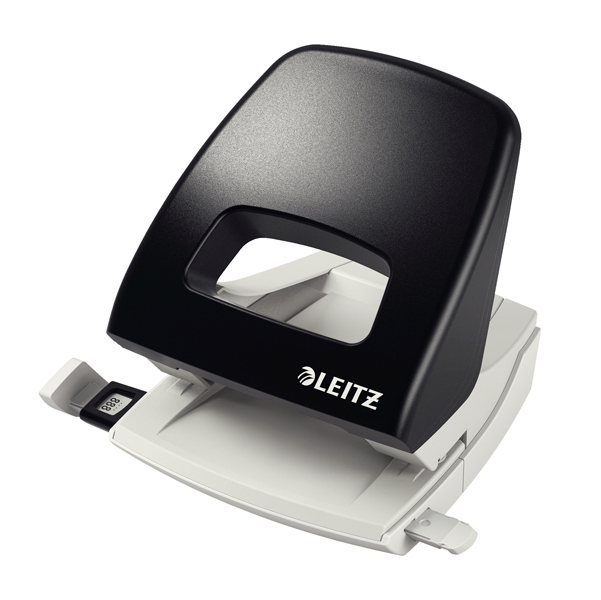 A 2 fori passo 8cm con guida regolabile. Struttura in plastica con rinforzi in metallo e base in plastica antiscivolo. Dotato di sistema a frizione ridotta, meccanismo 'pushepull' e nuova guida di arresto. Design ergonomico per agevolare la presa. Foro da 5,5mm.