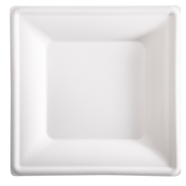 Fibra di canna da zucchero. Prodotto idoneo al contatto con alimenti secondo il regolamento CE n gradi 1935/2004 e successivi aggiornamenti. Prodotto conforme ai requisiti della Direttiva 94/62/CE per quanto riguarda il contenuto dei metalli pesanti. Non contiene sostanze sottoposte a restrizioni nelle legislazioni attualmente in vigore sui Food Contact Material. Il prodotto e' monouso. Conservare il prodotto in luogo asciutto e lontano da fonti di calore (0 gradi C +35 gradi C). Max 180 gradi per 10 min in forno e max 800W in microonde per 2 min. Utilizzabile in freezer -18 gradi C. Cibi caldi max 90 gradi C per 30min. Max 6 ore a contatto con alimenti. Dimensioni: 26x26cm - H 1,8cm Peso unitario: 28gr.