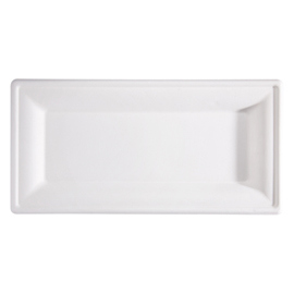 Fibra di canna da zucchero. Prodotto idoneo al contatto con alimenti secondo il regolamento CE n gradi 1935/2004 e successivi aggiornamenti. Prodotto conforme ai requisiti della Direttiva 94/62/CE per quanto riguarda il contenuto dei metalli pesanti. Non contiene sostanze sottoposte a restrizioni nelle legislazioni attualmente in vigore sui Food Contact Material. Il prodotto e' monouso. Conservare il prodotto in luogo asciutto e lontano da fonti di calore (0 gradi C +35 gradi C). Max 180 gradi per 10 min in forno e max 800W in microonde per 2 min. Utilizzabile in freezer -18 gradi C. Cibi caldi max 90 gradi C per 30min. Max 6 ore a contatto con alimenti. Dimensioni: 26x13cm - H 1,4cm Peso unitario: 16,5gr.