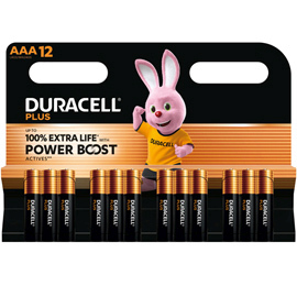 Batterie alcaline DURACELL PLUS POWERBOOST MINI STILO (AAA) 2400 in blister da 12 pezzi. Batterie composte da un mix di elementi (24 brevetti) pensato per dare maggiore potenza o maggiore durata a seconda dei bisogni del dispositivo.