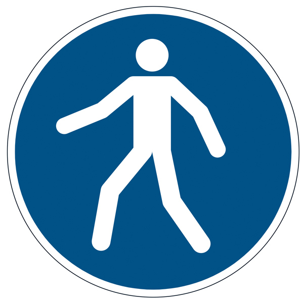 Segnaletica da terra per l'identificazione di aree pericolose, spazi di stoccaggio, passaggi pedonali ecc. Resistenza allo scivolamento R9 e conforme alla normativa DIN 51130. Conforme alla normativa UNI EN ISO 7010. Pittogrammi di sicurezza autoadesive per applicazioni su pavimenti in ambienti interni, come magazzini, centri di distribuzione, produzione, ecc. Resistente all'abrasione.