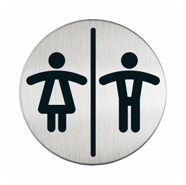 Pittogrammi di alta qualita', dal design chiaro ed essenziale. realizzati in acciaio inossidabile antiurto e antiabrasione. Applicabili su qualunque superficie grazie alle placchette adesive poste sul retro. Gradi 8,3cm. Colore argento metal.