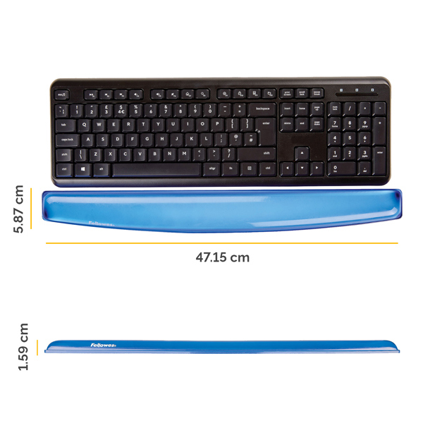 Poggiapolsi da tastiera in gel. Previene tensioni e irrigidimenti grazie alla particolare consistenza. Si pulisce con panno umido. In gel atossico. Trasparente blu.