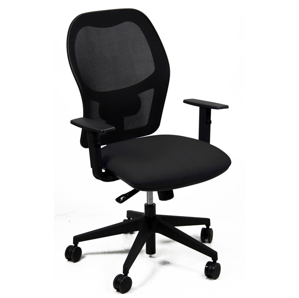 Seduta operativa girevole - elevazione a gas - meccanismo syncro - 4 blocchi anti shock - meccanismo a contatto permanente - Schienale con supporto lombare regolabile. Rivestimento in tessuto "ECO- Eco" 100% polipropilene. Completa di braccioli regolabili. Alt.tot: 102-113cm; Prof. tot: 68cm; Alt. schienale: 60cm; Largh. schienale: 48cm; Largh. sedile: 48cm; Prof.sedile: 46cm; Alt. sedile: 42-54cm.