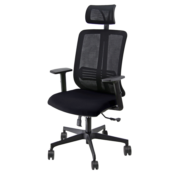 Sedia girevole operativa con schienale in rete - supporto lombare regolabile - elevazione a gas - meccanismo synchro con 3 blocchi antishock con traslatore e variatore di forza a contatto permanente; Seduta in rivestimento PLUS - BONDAI NO FLAME 100% PL. Completa di braccioli regolabili e poggiatesta. Altezza totale: 124-134cm; Profondita' tot: 68cm; Alt. schienale: 58cm (80); Larghezza schienale: 46cm; Larghezza sedile: 48cm; Profondita' sedile: 47cm; Alt. sedile: 42-55cm.