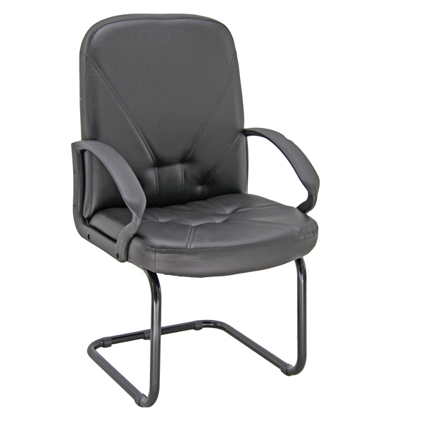 Poltrona in similpelle nera con schienale medio. Braccioli in nylon e slitta in acciaio tubolare. Altezza totale: 97cm Profondita' totale: 62 cm Altezza seduta: 45 cm Larghezza sedile: 50 cm Larghezza sedile con braccioli: 57 cm Nel Tessuto Classe Plus Sky disponibile solo nel colore nero.