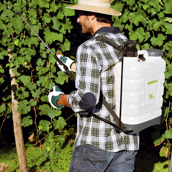 Pompa a zaino meccanico 16 litri Verdemax. Pompa a zaino meccanica ideale per l'irrorazione di trattamenti per piante e colture e per effettuare servizi di sanificazione. Dotata di cinture regolabili con sgancio rapido. Riempimento dall'alto. Lancia in acciaio inossidabile. 4 ugelli in dotazione: a cono, a doppio cono, a ventaglio ed a 4 fori. Pressione di lavoro variabile in base ad ugello montato. Altezza con la lancia: 75cm. Altezza al tappo riempimento 45cm. Larghezza 38cm. Spessore: 19cm. Peso: 3,26kg. Diametro tappo riempimento: 12cm. Materiale: Plastica, acciaio. Tipologia prodotto: Pompe a zaino. Capacita' serbatoio 16 litri. Codice produttore: 5979. Marca Verdemax.