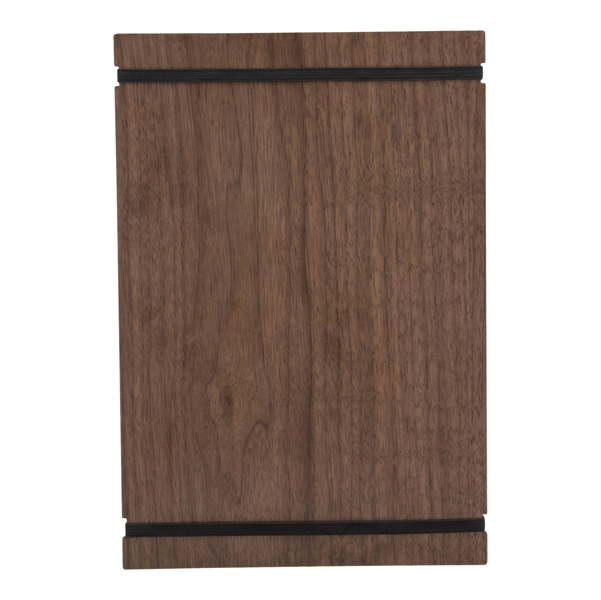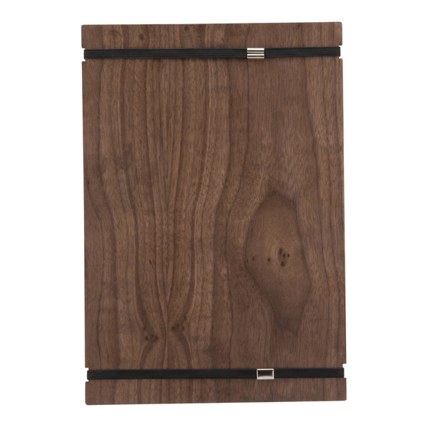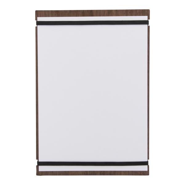 Porta menu' in legno con 2 bande elastiche che trattengono il menu'. Dimensioni: 32x22x0,5cm.