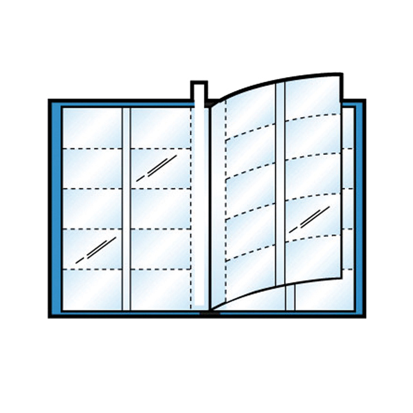 Portabiglietti da visita realizzati in PP. Copertina e retro personalizzabili blu. Contiene 10 buste a 10 spazi (200 biglietti da visita). Etichette fustellate per la classificazione. Formato utile: 21x29,7cm.
