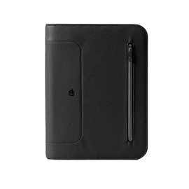 Portablocco A4 con zip. Tasca interna a soffietto, tasca interna con zip, notes verticale A4, scomparti per biglietti, asola porta penne e tasca esterna con zip. Dorso da 4cm.