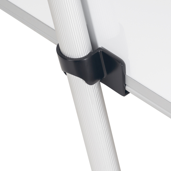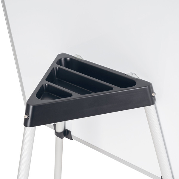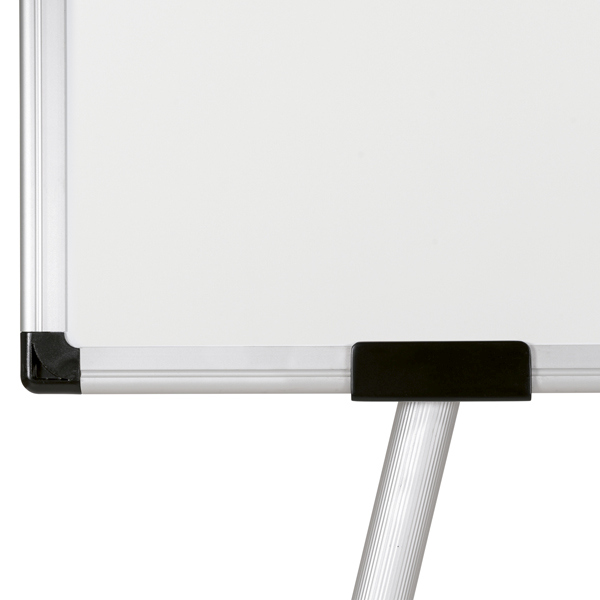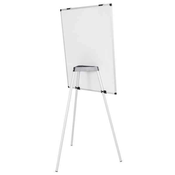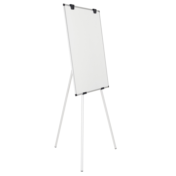Con cornice in alluminio, portatile e versatile. Puo' essere facilmente riposto quando non e' in uso. Puoi scrivere o disegnare su blocchi per lavagne o direttamente sulla lavagna. La superficie della lavagna e' cancellabile a secco ed e' facile da pulire. L'altezza della lavagna e' regolabile. Il treppiede in alluminio e' dotato di un connettore triangolare che funge da vassoio per gli accessori e i pennarelli. Include i morsetti per blocchi. Le parti di cui e' composto possono essere facilmente sostituite o riparate se si danneggiano. Caratteristiche: -superfice magnetica: si -bracci estensibili: no -kit supporto rotolo: no -clip per blocco: si -base con ruote: no -dimensioni lavagna: 100x70cm -altezza totale portablocco: 186cm.