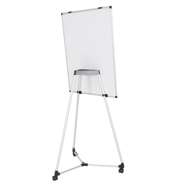 Con cornice in alluminio, portatile e versatile. Puo' essere facilmente riposto quando non e' in uso. Puoi scrivere o disegnare su blocchi per lavagne o direttamente sulla lavagna. La superficie della lavagna e' cancellabile a secco ed e' facile da pulire. L'altezza della lavagna e' regolabile. Il treppiede in alluminio e' dotato di un connettore triangolare che funge da vassoio per gli accessori e i pennarelli. Include i morsetti per blocchi. Le parti di cui e' composto possono essere facilmente sostituite o riparate se si danneggiano. Caratteristiche: -superfice magnetica: si -bracci estensibili: no -kit supporto rotolo: no -clip per blocco: si -base con ruote: si -dimensioni lavagna: 100x70cm -altezza totale portablocco: 186cm.