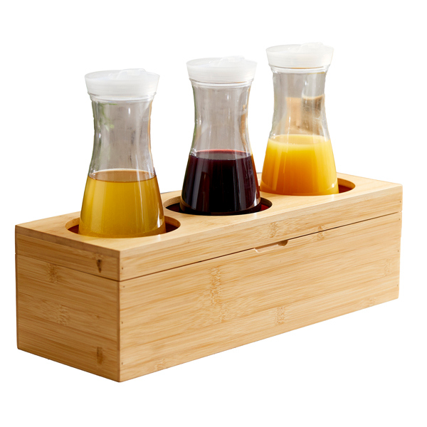 Portabottiglie con tre fori in bamboo. Dimensioni: 42x15,5x13 cm.