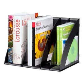 Portariviste modulare con struttura in robusto polistirene formata da 6 divisori regolabili. I moduli si assemblano consentendo spazi fra i divisori da 5 o da 10cm. Dimensione: 30x22x22cm.