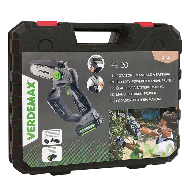 Il potatore da giardino e' progettato per tagliare rami, doghe, legno duro e tenero. Capacita' massima di taglio: 120 mm. FORBICE:38x19x17cm Peso:1,78 Kg. Batteria e caricabatteria inclusi. Su ordinazione Batteria di ricambio 20V (2Ah) articolo 4329.