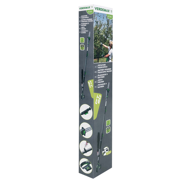 Il potatore telescopico a batteria Li-ion e' adatto per le attivita' di manutenzione delle aree naturali, in particolare per la potatura. E' fornito con una batteria da 20V - 2 Ah e relativo caricatore standard. Profondita' di taglio 200mm. Lunghezza variabile 200-255cm. Dimensioni: H200-255 x P18 x L9cm - peso 3,6kg inclusa batteria. Batteria di ricambio art. 4352. ATTREZZO - Tensione di funzionamento 20V DC - Velocita' azione lama 5 m/s - Profondita' di taglio 200 mm - Pressione sonora 86.7 dB(A) K= 3.0 dB(A) - Vibrazione min. 2.5 m/s2 - Capacita' serbatoio olio 90 cm3 CARICA BATTERIA - Tensione di rete 230 - 240 V / 50-60 Hz - Tensione di carica 20 V - Corrente di carica 2 Ah - Tempo di carica 1 / 1.5 h circa utilizzando il caricatore rapido, 3 h utilizzando il caricatore standard.