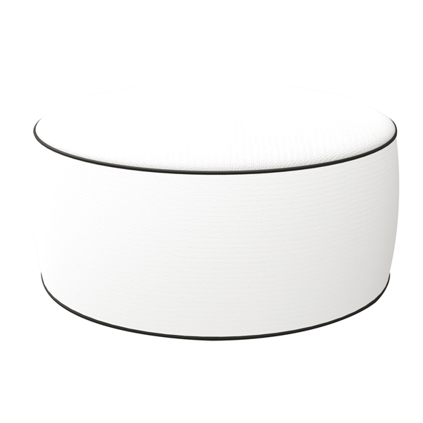 Il pouf Ottoman e' dotato di maniglia laterale e cerniera sul fondo. E' un prodotto sfoderabile e lavabile. Dimensioni: H 23cm. Diametro 53cm. Materiale:poliestere idrorepellente. Adatto ad uso interno ed esterno.