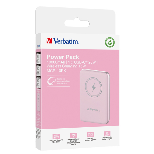 Power Bank Wireless Magnetico 10000 mAh Rosa Verbatim.