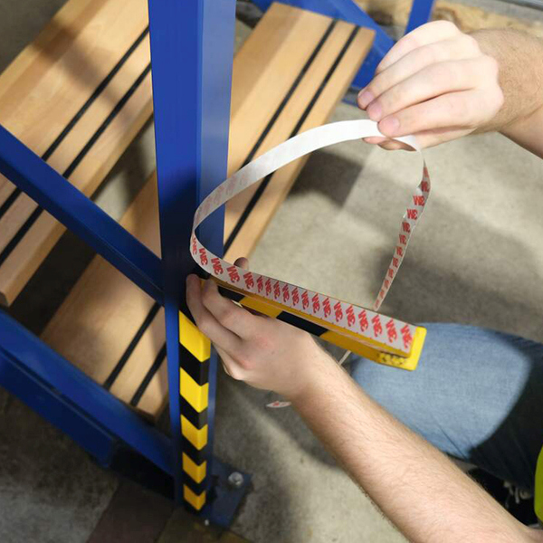 Profilo di protezione angolare adesivo dalla forma squadrata in schiuma poliuretanica (100% riciclabile) flessibile - Per uso interno - Utilizzabile in aree di produzione, reparti spedizioni e magazzini, scantinati, scale, garage, su pareti e travetti, scaffali e armadi, nonche' su macchine, carrelli di stoccaggio, ecc. - Adatto per segnalare punti pericolosi, proteggere superfici e pareti e prevenire infortuni dovuti a urti - I profili possono essere tagliati alla lunghezza desiderata con un taglierino affilato - Colore conforme alla norma ASR A1.3, simile a RAL 1004/9003 (giallo segnale/nero segnale) - Classe di incendio conforme alla norma DIN EN 13501-1 / classe E - Resistente alla temperatura da -30 gradi C a +70 gradi C - Lunghezza profilo: 1 m - Superficie adesiva: 20mm su entrambi i lati per maggiore adesione e stabilita'.