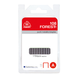 Punti Metallici 108 per Fissatrici con Punte Divergenti Che Garantiscono Un'ottima Penetrazione Ed Una Eccellente Tenuta Nel Legno. Confezionati in Blister da 1764 Punti.