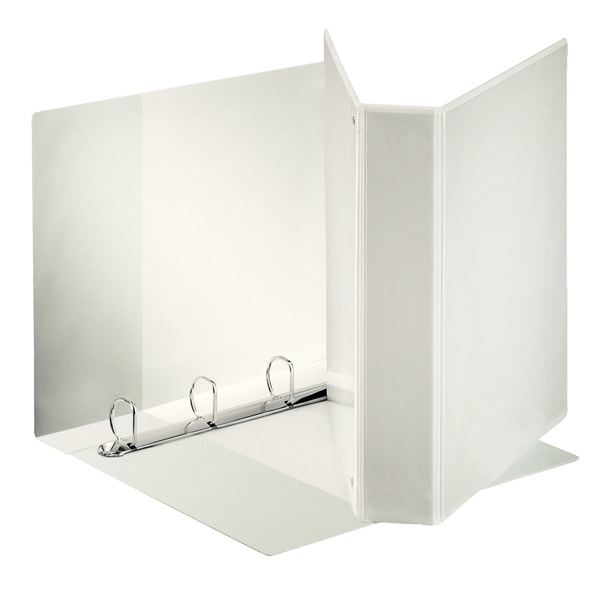 Raccoglitore personalizzabile Display Maxi in cartone da 2mm rivestito in polipropilene eco-compatibile con finitura tipo pelle ESSELTE. Il rivestimento, incollato su entrambi i lati e saldato ai bordi, garantisce un prodotto di qualita' eccellente. Meccanismo a 4 anelli a D 50mm. Il formato del raccoglitore consente di inserire indici e intercalari in formato Maxi per ospitare buste a perforazione universale. La personalizzazione e' resa agevole da tre tasche esterne, mentre due tasche interne permettono di contenere fogli sparsi e appunti. Formato interno: A4. Contenuto utile: 220x300mm. Dorso: 7,1cm. Diametro anelli: 50mm. Tipologia prodotto: raccoglitori ad anelli. Colore: Bianco. Materiale: cartone plastificato eco. Dimensione esterne prodotto: 27x35cm. Capacita' del raccoglitore: 480 fogli A4 da 80gr/mq. Codice produttore: 394754000. Marca Esselte.
