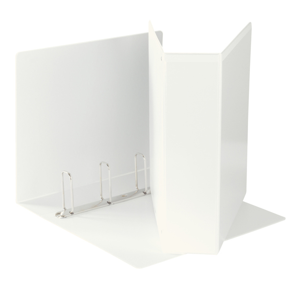 Raccoglitore display formato Maxi, in cartone da 2 mm rivestito in polipropilene eco-compatibile con finitura tipo pelle. Il rivestimento, incollato su entrambi i lati e saldato ai bordi, garantisce un prodotto di qualita' eccellente. Il formato del raccoglitore consente di inserire indici e intercalari in formato Maxi per ospitare buste a perforazione universale. La personalizzazione e' resa agevole da tre tasche esterne. Meccanismo a 4 anelli quadri (altezza 65 mm). Formato utile: 22x30 cm (A4). Dimensioni: 270x350x60 mm. Capacita': 580 fogli A4 (80 gr/mq). Colore bianco.