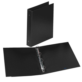 Raccoglitore realizzato in polipropilene con anima di cartone. Texture goffrata ''Europa'' per chi ama l'eleganza. Elevata resistenza per un uso quotidiano molto intenso a casa e in ufficio. Meccanismo a 4 anelli tondi (diametro 50mm). Formato utile 22x30cm. Formato esterno 29,5x32cm. Colore nero. Made in Italy.