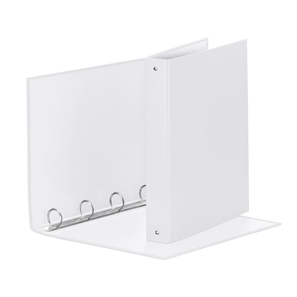 Raccoglitore in robusto cartone da 2mm di spessore rivestito in polipropilene (bianco internamente). Solidita' e affidabilita' dei materiali rendono il prodotto ideale per un uso intensivo domestico o in ufficio, mentre il rivestimento fornisce eleganza e gradevolezza al tatto. Meccanismo a 4 anelli tondi (diametro 30mm). Formato utile 22x30cm. Dimensioni esterne 27,5x31,5x4,5cm. Capacita' 200 fogli (da 80 gr/mq). Colore bianco.