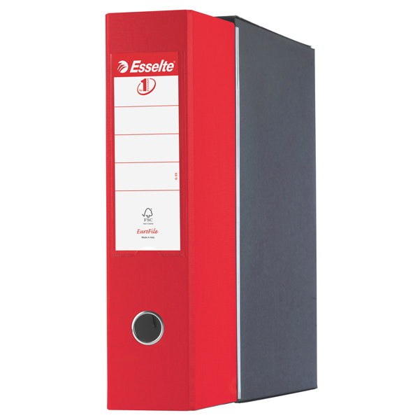 Registratore in robusto cartone da 2 mm, rivestito sia internamente che esternamente in polipropilene incollato su entrambi i lati. Dotato di ampia etichetta scrivibile su entrambi i lati e di portaetichetta saldato sul dorso. L'ottima qualita' dei materiali impiegati, l'elevato livello di finitura e la lavorazione ''case-made'' lo rendono una garanzia in termini di resistenza, robustezza, funzionalita' ed eleganza. Queste caratteristiche, oltre alle bande metalliche di rinforzo che mantengono i bordi della custodia perfettamente diritti anche dopo un lungo utilizzo, rendono Eurofile ideale per un uso intensivo. Formato Commerciale (LxH) 23x30 cm. Dorso 8 cm. Colore rosso. Dimensioni 85x320x295 mm.