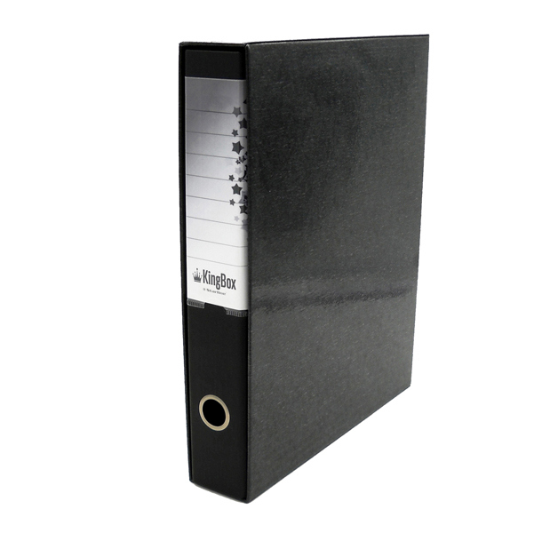 Registratore Indeformabile STARLINE sfuso colore Nero modello KingBox Protocollo. KingBox e' un registratore indeformabile, lavabile e molto duraturo nel tempo, in cartone accoppiato da 2mm di spessore. Rivestito in resistente polipropilene goffrato. Dotato di propria custodia in cartone accoppiato nero con bordi rinforzati. Meccanismo a leva di alta qualita' ancorato saldamente mediante 4 rivetti. Per agevolare la presa e facilitare l'archiviazione, KingBox presenta un anello di estrazione in acciaio nichelato (diametro 25mm). Un'etichetta personalizzabile e scrivibile inserita all'interno di una comoda busta termosaldata in pvc trasparente (170x100mm), interamente fasciante il dorso. Il registratore KingBox e' disponibile in 2 modelli: Formato protocollo (Dorso 5 e Dorso 8) e in un'ampia gamma di colori. Modello KingBox Protocollo. Lavabile e resistente. Colore Nero. Materiale Cartone plastificato. Dorso 5cm. Tipologia Registratori a leva. Dimensioni esterne 285x355x55mm. Formato utile 23x33cm (lxh). Custodia compresa. Portaetichetta con cartoncino compreso. Meccanismo a leva con pressino. Vendita di un solo registratore Starline formato KingBox Protocollo. Articolo STL4026. Codice produttore RXP5NE. Marca Starline.