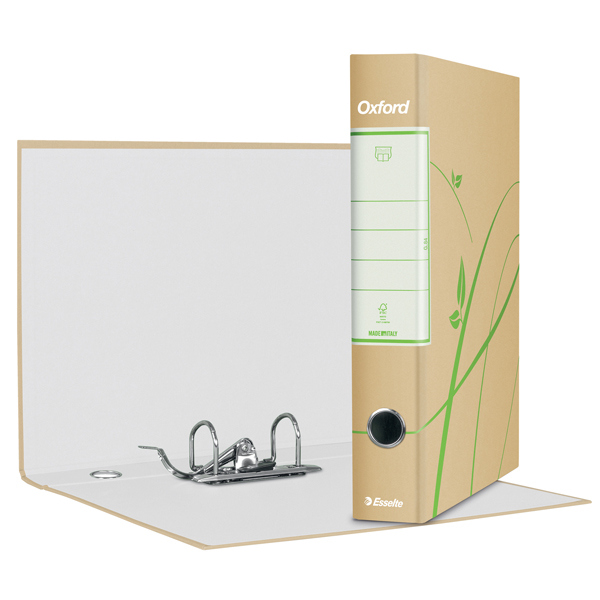 Il nuovo registratore Oxford Green rappresenta il simbolo dell'elevata qualita' della produzione Esselte in una nuova veste sostenibile, certificata FSC. Il nuovo motivo floreale, contraddistinto da un'accesa tonalita' di verde, dona un tocco di freschezza e novita', rendendo questo classico senza tempo ancora piu' unico e particolare. La resistente struttura in cartone da 2 mm rivestita da una carta stampata 100% riciclata conferisce una finitura premium ad un prodotto adatto per qualsiasi tipo di archiviazione, anche le piu' esigenti.