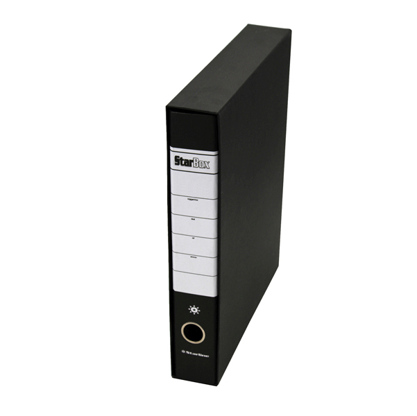 Registratore STARLINE colore Nero modello Starbox. Con struttura in cartone rivestita in carta goffrata stampata e risguardo bianco. Dotato di meccanismo a leva in acciaio nichelato con pressino. Custodia in fibrone nero rivestita in carta usomano. Anello di estrazione in metallo. Il registratore Starbox e' disponibile in 4 Modelli (Protocollo e Commerciale, Dorso 5 e Dorso 8) e in un'ampia gamma di colori. Modello Starbox Protocollo. Colore Nero. Materiale cartone. Tipologia registratori a leva. Dimensioni esterne 28,5x35,5cm. Dorso 5cm. Formato utile Protocollo 23x33cm (lxh). Custodia compresa. Meccanismo a leva con pressino. Confezione 18 registratori neri. Articolo STL4016. Codice produttore 0201930.NE. Marca Starline.