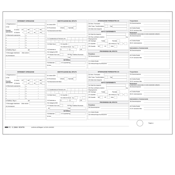 Registro carico/scarico rifiuti, 100 pagine numerate formato 21,5x29 ,7cm.