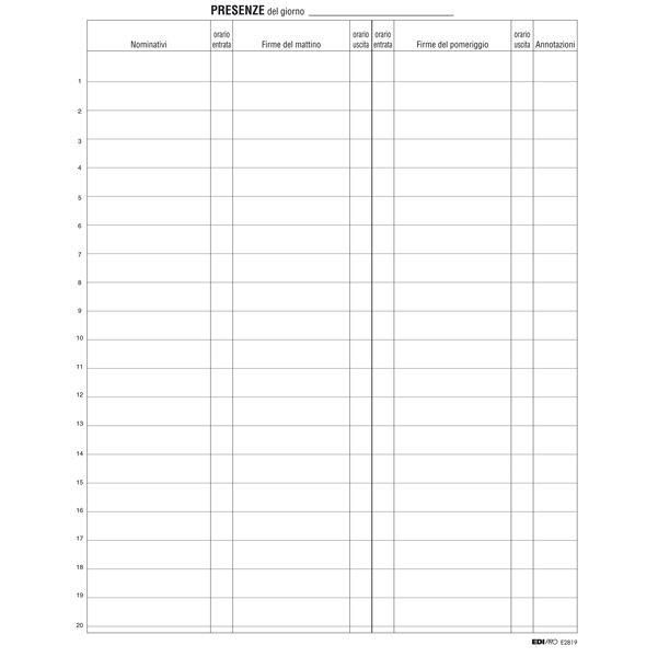 Registro firme presenze al lavoro. Formato 31 x 24cm. 100 fogli. Il registro firme per le presenze al lavoro da 100 fogli, ora disponibile su DMwebShop, è lo strumento ideale per le aziende di tutte le dimensioni che desiderano tenere traccia in modo preciso e organizzato delle presenze dei loro dipendenti. Questo registro è progettato per garantire la massima efficienza nella gestione delle presenze, offrendo un metodo semplice e affidabile per monitorare gli orari di lavoro. In ogni ambiente lavorativo, è fondamentale avere un sistema affidabile per la registrazione delle presenze dei dipendenti. Questo non solo aiuta a mantenere l'ordine e la disciplina, ma è anche un requisito legale in molti contesti. Il registro firme per le presenze al lavoro da 100 fogli è uno strumento progettato appositamente per soddisfare queste necessità. Il registro è caratterizzato da un layout chiaro e intuitivo, che rende facile per i dipendenti firmare al loro arrivo e alla loro partenza. Ogni pagina è progettata per garantire che tutte le informazioni siano registrate in modo ordinato e leggibile. Con 100 fogli, questo registro offre un ampio spazio per monitorare le presenze per un periodo prolungato, rendendolo ideale per aziende di ogni dimensione.