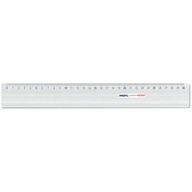 Articolo di precisione in alluminio anodizzato. Riga dotata di smusso bianco. Listello in gomma antisdrucciolo. Confezione in busta di PVC.