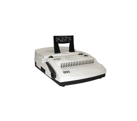 Rilegatrice EC21+4 con perforazione elettrica. Predisposta per la perforazione e rilegatura over-size.Dorsi: plastici.Sistema di perforazione: elettrica 21 fori dorsi plastici, 2/4 fori per anelli.Capacita' perforazione: 25 fogli.Margine di perforazione: regolabile 2,5-4,5mm.Capacita' di rilegatura: 450 fogli.Spirale: diametro max 51mm.Guida laterale: regolabile ai formati A4, A3 in due passaggi.Guida per misura della spirale: si.Dimensioni: 295x440x530mm.Peso: 16,5kg.