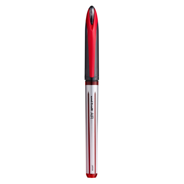 Roller UNI-BALL AIR e' una penna che si adatta al tuo stile di scrittura. Rivoluzionaria tecnologia Air-tip, il meccanismo a cuscinetto d'aria che permette di scrivere a qualsiasi angolazione e di variare il tratto in base alla pressione della mano. Clip nello stesso colore dell'inchiostro. . Sfera in carburo di tungsteno. Punta large. Colore: rosso.
