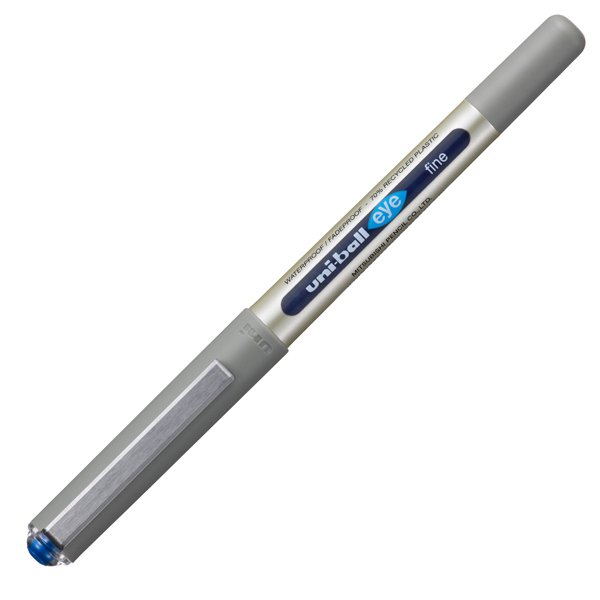 La penna roller Uniball Eye e' realizzata con il 70% di plastica riciclata, riducendo l'impatto ambientale e mantenendo l'eccezionale qualita' attesa. Inchiostro liquido a pigmenti resistente all'acqua e allo sbiadimento, un flusso costante di scrittura grazie al sistema Uni-flow, e una punta in acciaio inossidabile per una scrittura precisa e duratura. Il design ergonomico e la finestra per il monitoraggio del livello di inchiostro completano le sue qualita' eccellenti. Punta 0,7mm. Colore: blu.