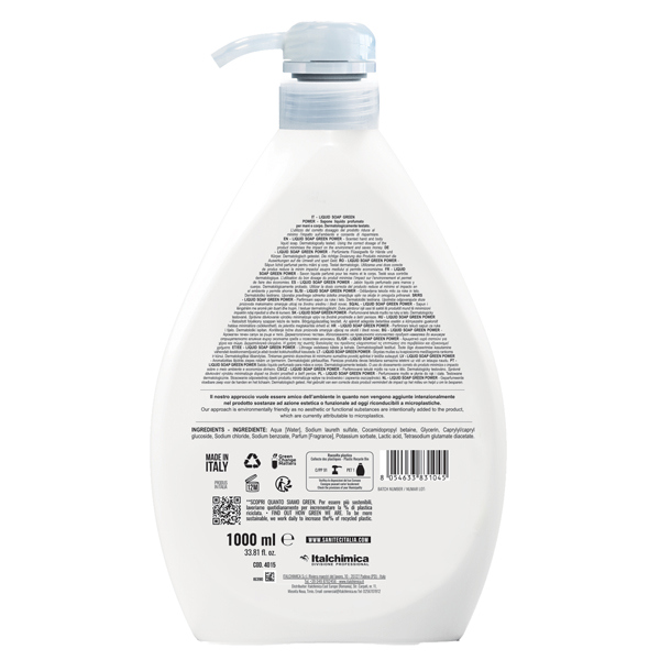 Sapone liquido profumato per mani e corpo con ingredienti di origine naturale e dermatologicamente testato. Delicato sulla pelle, con agenti idratanti, per la pulizia di mani e corpo. Modalita' d'uso: applicare il prodotto sulle mani inumidite. Frizionare fino ad ottenere una morbida schiuma avendo cura di passare gli spazi tra le dita e i polsi per circa 30 secondi. Risciacquare con acqua e asciugare a fondo. pH: 5,5. Certificato Ecolabel.