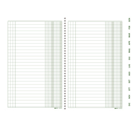 SCADENZIARIO SPIRALATO GEN-DIC. Formato 24x17cm. 36 pagine in carta palatina avorio da 85 grammi+12 in carta palatina da 150 con mylar trasparente con il mese. 96 facciate scrivibili.