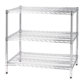Kit scaffali in acciaio cromato con tubolari diametro 2,54cm e piedini regolabili Profondita' scaffali 60cm adatti per archivi e magazzini. 3 ripiani dimensioni totali: 60x90cm H90cm. Portata 100kg.