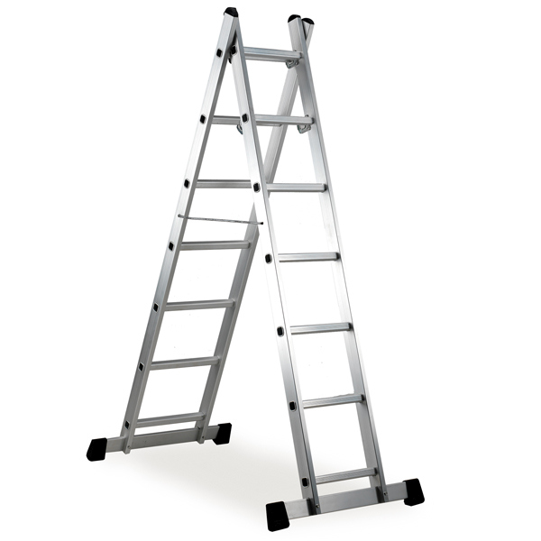 Trabattello in alluminio Everest a 6 gradini. Trasformabile in doppia scala o scala allungabile. Misure a Trabattello 40x160xH168cm. Consigliata per uso domestico e bricolage. Prodotto testato da SGS e conforme alla normativa Europea UNI EN 131. Portata massima: 120kg.