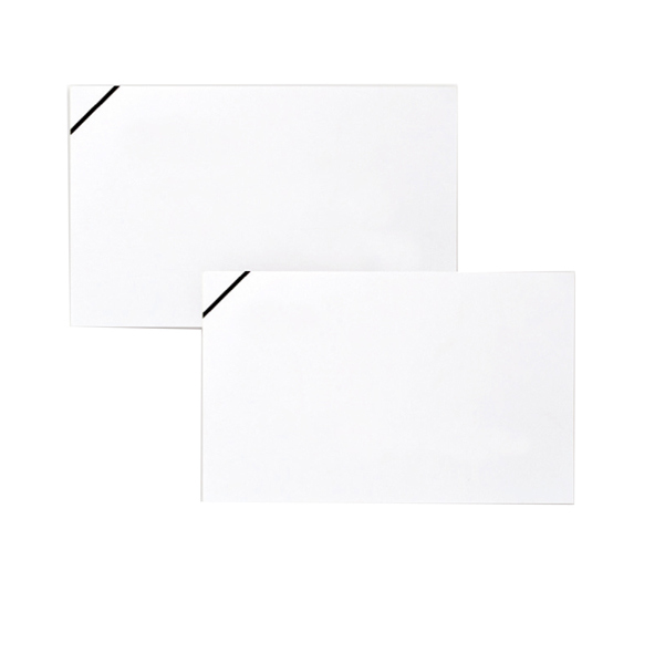 Busta e biglietto bianco con stampa a lutto in angolo. Biglietti da 200gr coordinati a buste con patella e taglio a punta da 85gr. Confezionate in scatole da 100 biglietti + 100 buste.