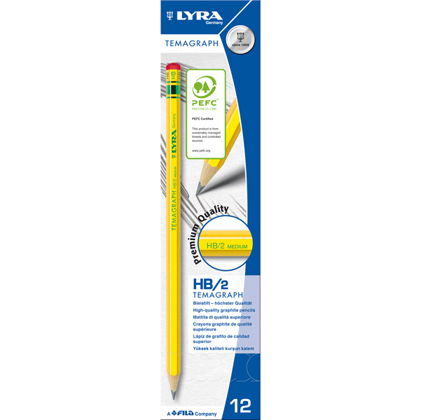 Matita di grafite di alta qualita'. Tratti sottili e precisi. Corpo a sezione esagonale da diametro 7mm. Lunghezza 18cm esclusa la gomma. Bottone colorato che identifica la gradazione. Certificato PEFC che garantisce che il legno utilizzato proviene da foreste gestite in modo corrretto e responsabile. Gradazione HB, confezione 12 pezzi.