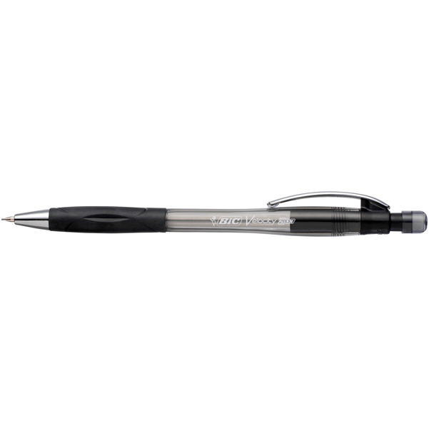 Portamine ricaricabile con mine HB da 0,7mm. Gommino protetto all'estremita', clip in metallo, grip in gomma grigia (chiara per lo 0,5 e scura per lo 0,7). Punta metallica retrattile che salvaguarda il taschino.
