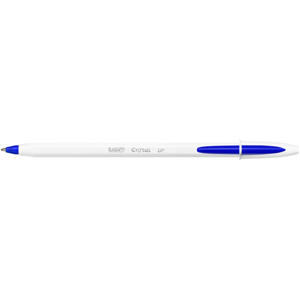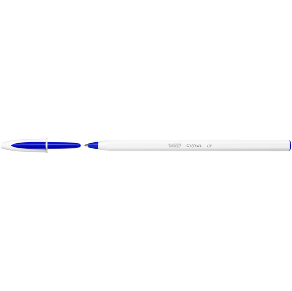 Penne blu a sfera Cristal Up con cappuccio e punta media da 1,2mm Bic. Cristal da fusto bianco lucido con clip, tappino e punta del colore dell'inchiostro. Inchiostro Easy Glide per una scrittura ultra scorrevole. Punta da 1,2mm. Colore: blu. Tipologia prodotto: penne a sfera con cappuccio. Materiale: plastica. Punta: media. Tratto da 0,35mm. Codice produttore: 949879. Marca Bic.