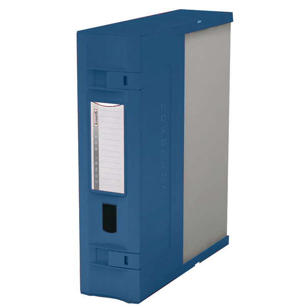 Scatole archivio Combi Box E600 realizzata in Trilex (materiale a tre strati che garantisce lunga durata, leggerezza, rigidita', robustezza ed eleganza). Parte colorata realizzata in polipropilene spessore 2mm. Lentino porta etichetta trasparente sul dorso. Componibile, anche con la E500, sia orizzontalmente sia verticalmente grazie alle clips in dotazione. Chiusura patelle retraibili. Formato utile: 29,5x35,8cm.