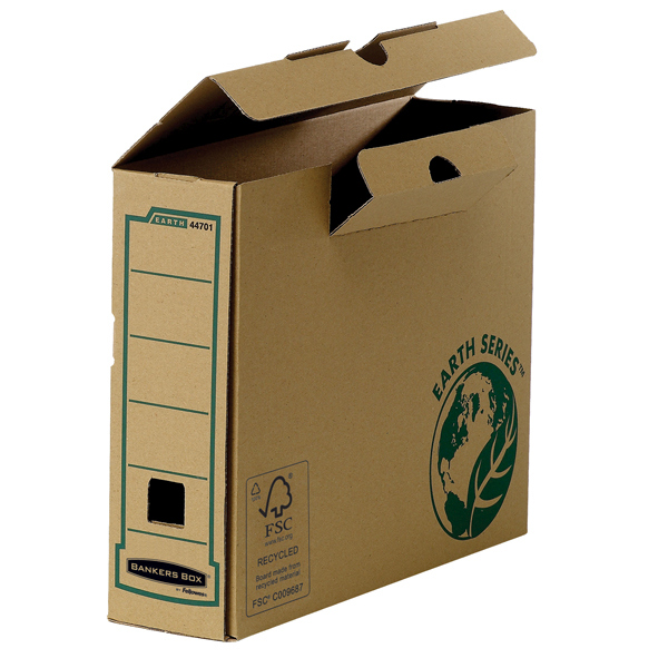 Ideale per conservare documenti e cartelle formato A4. Coperchio con aletta di chiusura per maggiore sicurezza. Area etichettabile sul dorso. Compatibile con le scatole archivio e i contenitori R Kive Earth Series. Prodotto costituito al 100 di cartone riciclato FSC. Stampato con inchiostri a base d'acqua Colle prive di solventi.